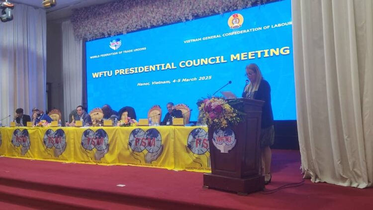 Con el compromiso de seguir luchando por avanzar hacia una sociedad próspera y sostenible y un llamado a la unidad de la clase obrera mundial en medio del complejo panorama laboral que se nos avecina, la voz de la Central de Trabajadores de Cuba (CTC) se alzó en el Consejo Presidencial de la Federación Sindical Mundial (FSM), que tuvo lugar este 4 de marzo en Hanoi, Vietnam.