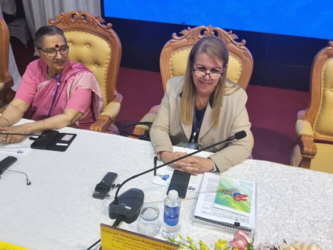 Isdalis Rodríguez, segunda secretaria de la CTC, intervino en la reunión anual que pasó revista a las acciones realizadas en el 2024 y proyectó nuevas metas para el 2025, año en que se celebra el 80 aniversario de constituida la FMS, y en la que Cuba ocupa hoy una de sus vicepresidencias.