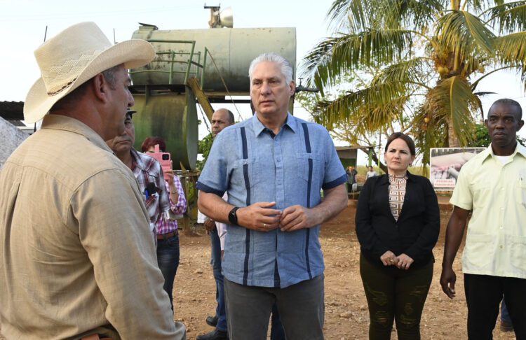 Acompañado de Roberto Morales Ojeda, miembro del Buró Político y secretario de Organización del Comité Central del PCC, Díaz-Canel inició el recorrido de este jueves por la finca La Tinaja, un espacio con más de 200 hectáreas a cargo del productor Juan Ignacio Alonso, informó la Presidencia en X.