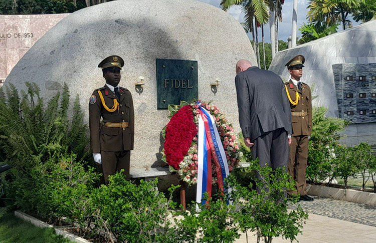 Señaló a Chernyshenko sentirse complacido porque en esta, su nueva estancia en la Mayor de las Antillas, pudo estar en otros lugares del país, y porque a su llegada, por Santiago de Cuba, rindiera homenaje al Comandante en Jefe Fidel Castro Ruz en el Cementerio Patrimonial de Santa Ifigenia. El homenaje que le rindió a Fidel, enfatizó, «es lo que hacen los verdaderos amigos».
