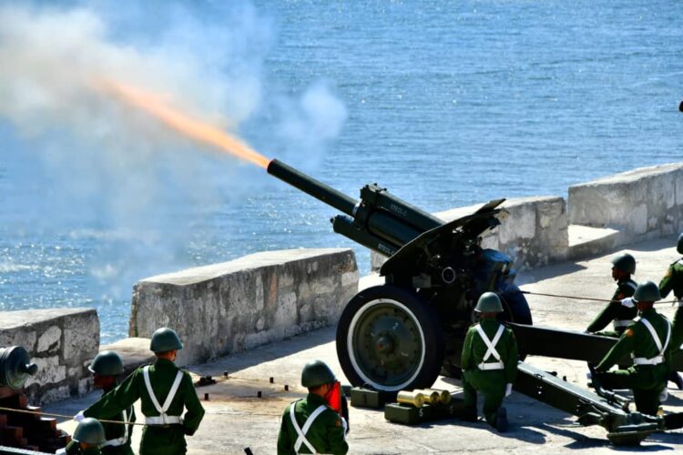 Una batería de artillería terrestre integrada por oficiales y cadetes de la Escuela Interarmas de las FAR General Antonio Maceo, Orden Antonio Maceo, con ese trascendental motivo efectuó 21 salvas a partir de las 4:10 pm.