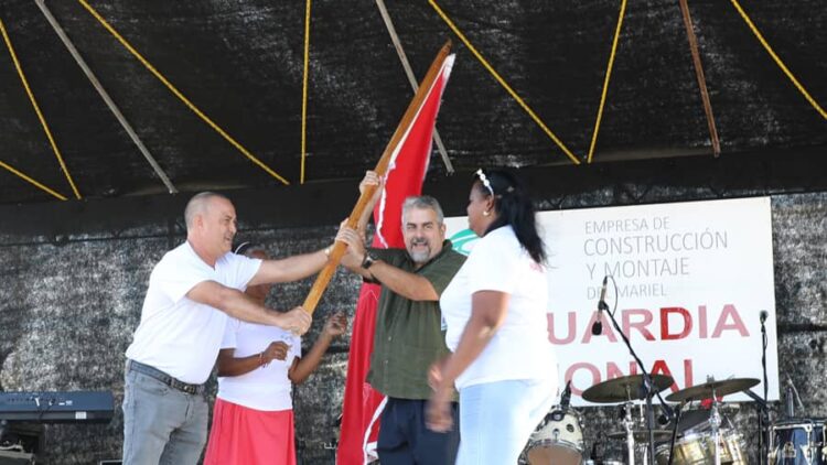Al recibir el estandarte Alain Jesús González García, director general de la ECM Mariel, en presencia de Gladys Martínez Verdecia, integrante del buró político y secretaria del Partido en Artemisa y Boris Luis Espinosa, secretario general de la CTC especial de la ZEDM, entre otros directivos fueron reconocidas unidades empresariales de base que se destacaron durante el periodo.
