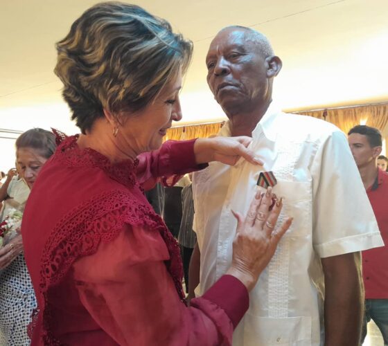 Por sus aportes en las actividades de recuperación tras el paso de los huracanes Oscar y Rafael por el territorio nacional, el trabajador del sector de energía y Minas Manuel Betancourt Cutiño recibió la Medalla Hazaña Laboral.