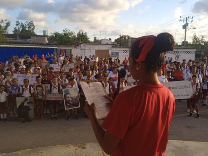 El área de la plazoleta de este poblado fue escenario para el jubiloso acto donde no faltaron los números culturales protagonizados por alumnos de la escuela primaria Conrado Benítez García y de la secundaria básica 15 de Mayo.