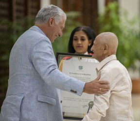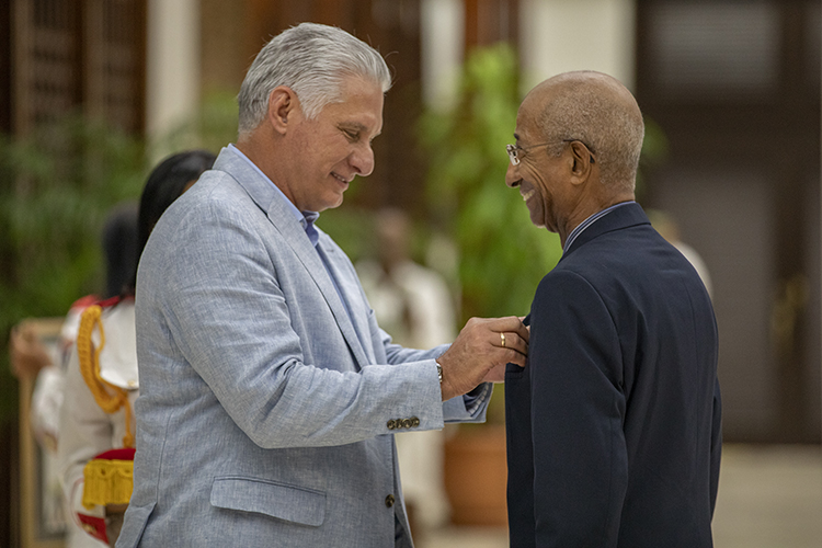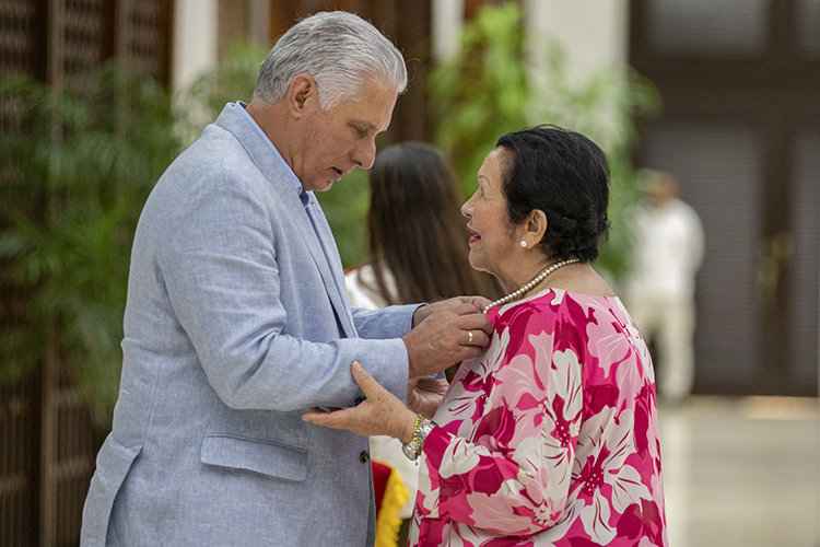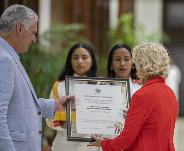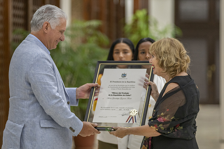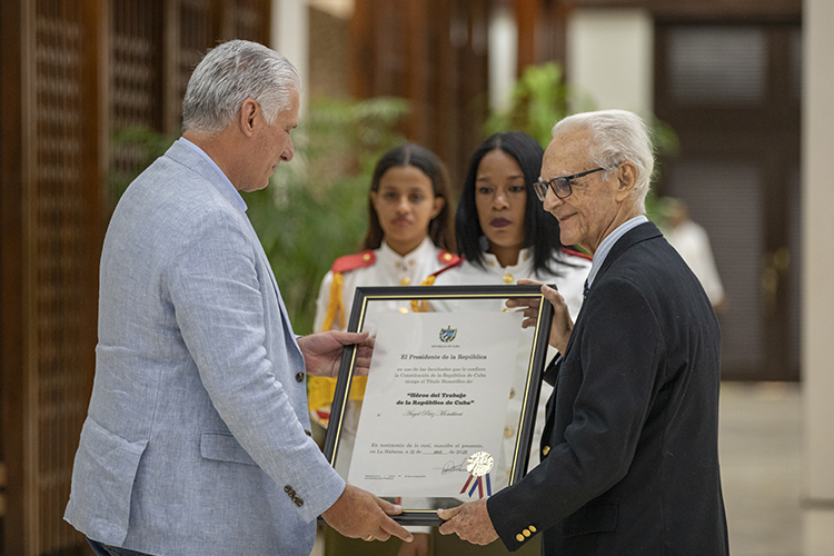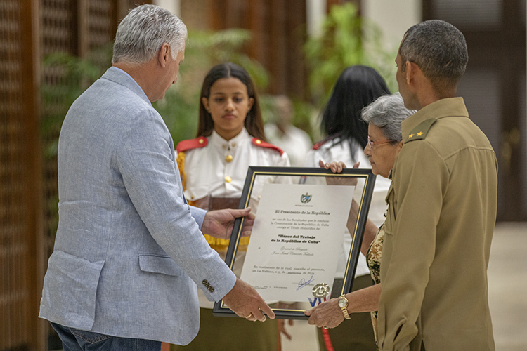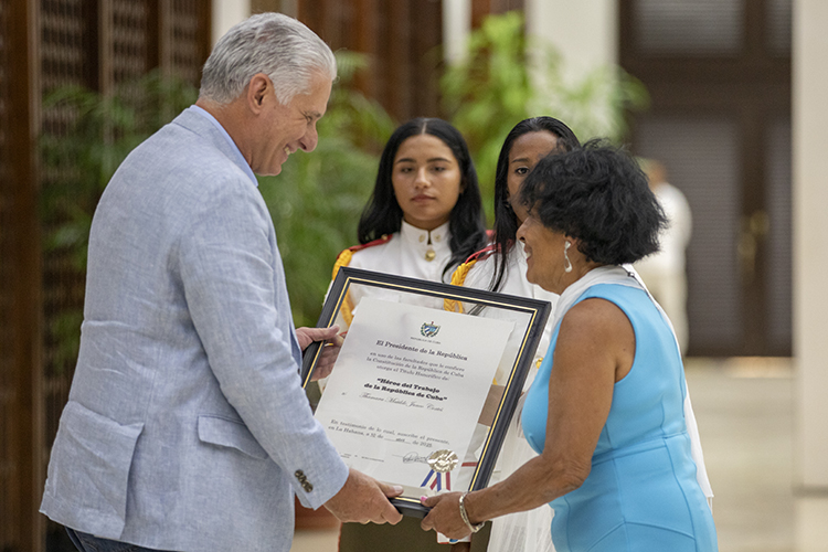 El Primer Secretario del Comité Central del Partido Comunista de Cuba y Presidente de la República, Miguel Díaz-Canel Bermúdez, otorgó el título honorífico de Héroe del Trabajo de la República de Cuba, uno de ellos con carácter póstumo, a 13 personalidades con contribuciones excepcionales al país, durante el acto de imposición de títulos honoríficos y condecoraciones a trabajadores y colectivos destacados, efectuado este martes en La Habana en conmemoración del 1ro de Mayo.