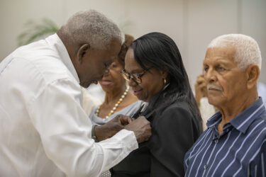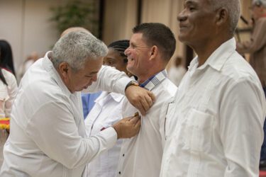 En las palabras centrales de la ceremonia, la integrante del Comité Central del Partido y segunda secretaria de la Central de Trabajadores de Cuba (CTC) Isdalys Rodríguez Rodríguez, a los condecorados les dijo «ustedes son protagonistas de obras casi anónimas de dedicación, entereza y altruismo; cubanos que desde sus sencillas cosas emergen en grandeza, amor y desprendimiento que exaltan a la Patria».