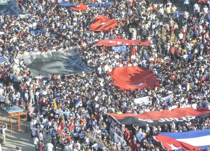 Justo a las siete de esta bella mañana de mayo se oyeron las notas de nuestro Himno Nacional. El concepto Revolución volvió a retumbar en la Plaza de la Revolución José Martí, a 25 años de que el Comandante en Jefe nos llamara a emanciparnos por nosotros mismos, a desafiar fuerzas dominantes dentro y fuera del ámbito nacional; a luchar con audacia.