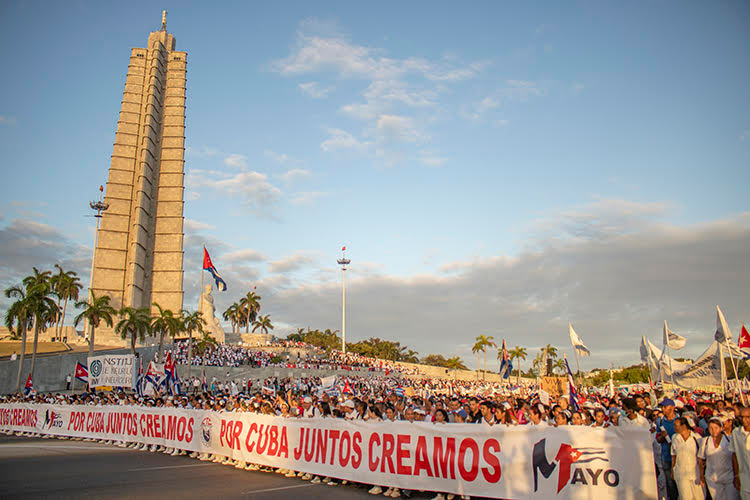 El desfile fue precedido de la alocución de Ulises Guilarte De Nacimiento, miembro del Buró Político y secretario general de la CTC quien afirmó que “Continuaremos sin vacilación la batalla que libramos por la consolidación de nuestra libertad, independencia y justicia social; lo confirma el mar de pueblo que inunda las plazas de todo el país con la consigna de Por Cuba juntos creamos, cuyo contenido ratifica convicción de que la unidad es la garantía de la victoria’.