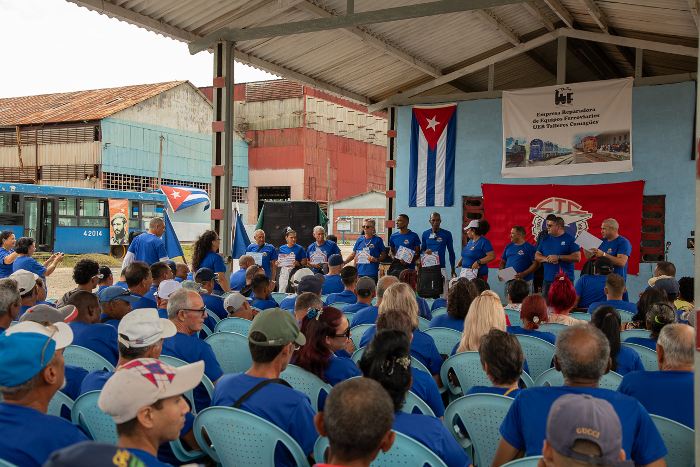 Durante su intervención José Raúl Rivero Salazar, secretaro general del Sindicato de Transporte y Puertos, felicitó al colectivo galardonado en las actuales condiciones que han enfrentado con decisión, resaltando la activa presencia de racionalizadores e innovadores, cuya tarea ha sido vital en muchas de las obras realizadas en los talleres del ferrocarril camagüeyano.