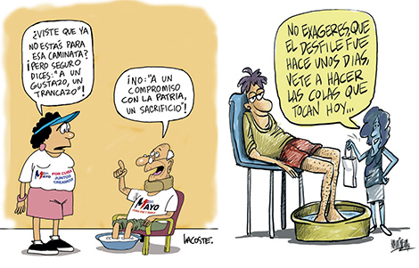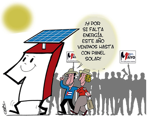de Mayo con más madurez y organización, sin perder un ápice de pasión. Preparaba con tiempo lo que ahora la juventud llama el outfit para el desfile: su gorrita y pulóver alegóricos; una banderita cubana de papel, bien reforzada para que no se despegara del palito; mochila y pomos de agua y con refresco de paquetico; el pan del 30 de abril en una jabita de nailon, en fin, lo primero que encontrara.