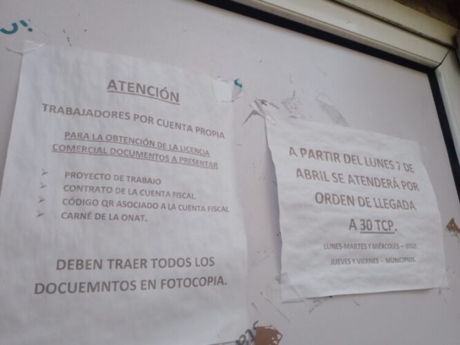 El tumulto, la demora, incluso la “venta de turnos” por parte de “coleros”, también hacen mellas en la gestión de la oficina del Registro Central Comercial en Santiago de Cuba, a donde los TCP que ejercen actividades reguladas por el Ministerio del Comercio Interior (servicios gastronómicos, personales, técnicos, comerciales, entre otros) están obligados a acudir para obtener la licencia comercial.