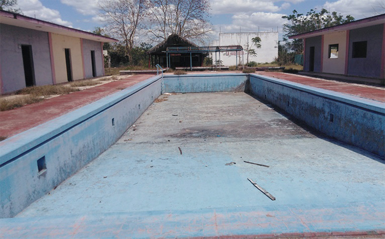 Ni agua ni personas en la piscina de la Villa La Arboleda en Ciego de Ávila. Foto: José Luis Martínez Alejo