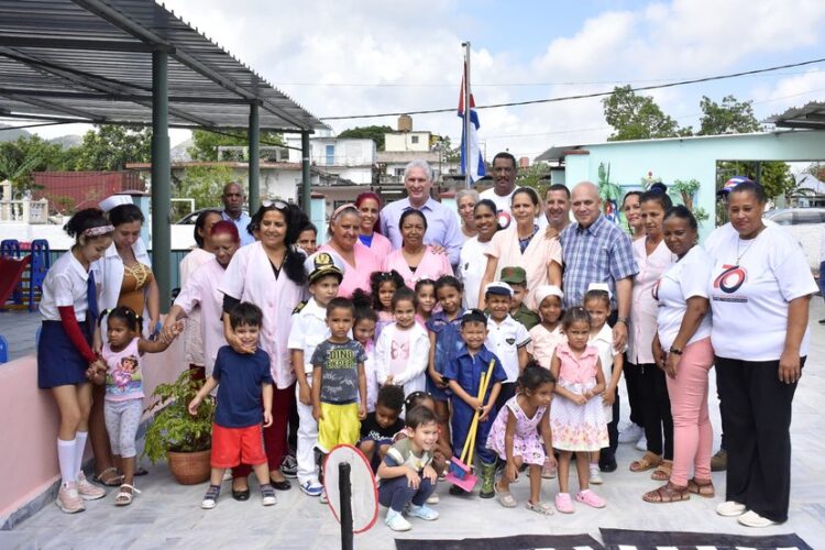 Antes del habitual encuentro al cierre de estos recorridos con cuadros del Partido y directivos territoriales de las esferas social y económica, el Jefe de Estado visitó el círculo infantil Meñique, inaugurado este curso escolar en un amplio y ventilado local recuperado por las instituciones y empresas del territorio, para la atención de niñas y niñas de familias trabajadoras.