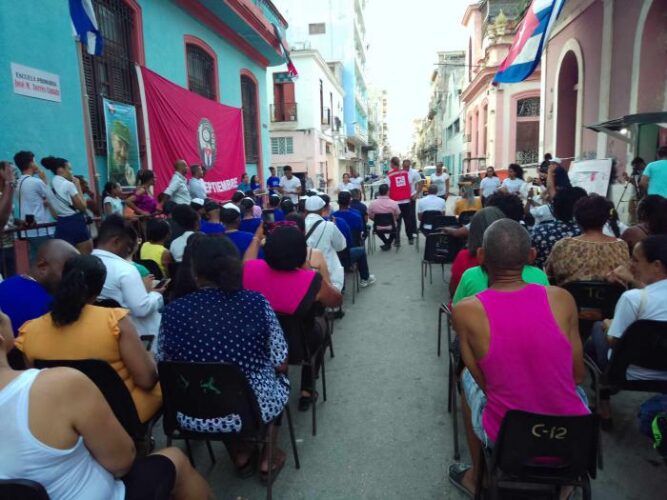 Al Barrio Debate asistieron Giovanni Barrueta Ordóñez, miembro del Buró Provincial del Partido en La Habana; Ismaray Pérez Carrillo, Coordinadora del Gobierno en la ciudad, y Eliades Rodríguez Martínez, Coordinador Provincial de los CDR.