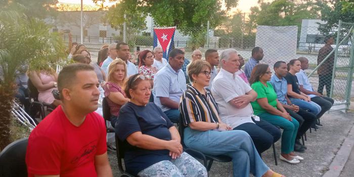 El primer secretario del Comité Central del Partido Comunista de Cuba y Presidente de la República Miguel Díaz- Canel Bermúdez asistió este viernes al barrio debate de los Comité de Defensa de la Revolución (CDR) por el deber patrio y antimperialista celebrado en la zona 57 del municipio capitalino de Playa.