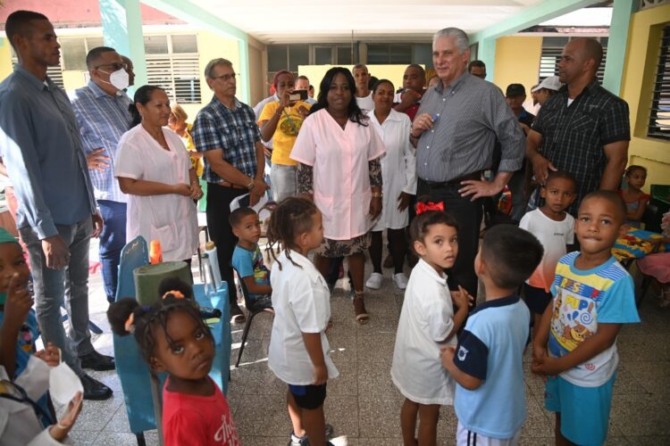 Como parte de su recorrido por el barrio en transformación El Económico, del Consejo Popular Jamaica, el Presidente se llegó también hasta el círculo infantil Campanitas de Cristal. Con una matrícula de 166 niños, ahora a plena capacidad, el centro es una referencia para la provincia, y el cuidado de sus áreas va a la par del esmero que prestan educadoras y auxiliares a las niñas y niños del primero al quinto año de vida.