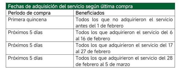 Iniciada la distribución, la venta se ejecutará, durante los primeros 15 días, para aquellos clientes que no adquirieron el servicio en el mes de febrero.