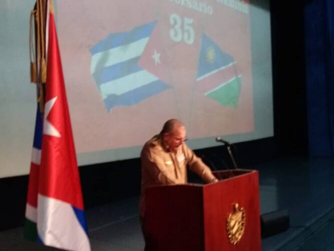 El miembro del Comité Central del Partido, General de División Víctor Rojo Ramos, afirmó que es un alto honor para las Fuerzas Armadas Revolucionarias y para el pueblo de Cuba celebrar el aniversario 35 de las Fuerzas de Defensa de Namibia.