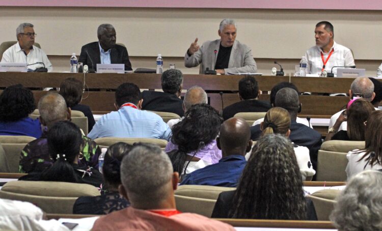 La sesión inaugural está presidida por los miembros del Buró Político del Partido, Esteban Lazo Hernàndez, presidente de la Asamblea Nacional del Poder Popular y del Consejo de Estado, Roberto Morales Ojeda, secretario de organización del Comité Central del Partido y Ulises Guilarte de Nacimiento, secretario general de la CTC, así como otros miembros del secretariado del Comité Central del Partido, viceprimeros ministros y ministros de los organismos globales de la economía.