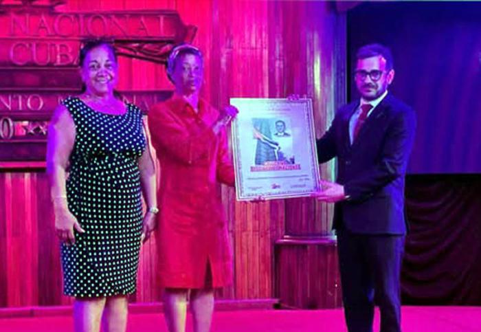 Arisleydis Hidalgo Leyva, secretaria general del Comité Provincial del Sindicato Nacional de los Trabajadores de la Administración Publica en la capital entrego el reconocimiento al colectivo en acto solemne celebrado en el Hotel Nacional de Cuba.