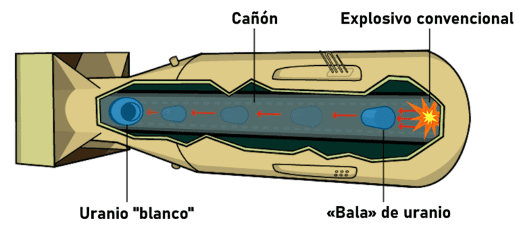 En ese proceso algunos modelos de bombas nucleares emplean la energía que libera la explosión de varias pequeñas bombas atómicas contenidas dentro de ella misma.