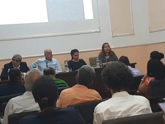 Acompañan a los periodistas en el IV Pleno, la integrante del Comité Central del Partido Comunista de Cuba, Vicejefa del Departamento Ideológico, Marydé Fernández; el Presidente del Instituto de Información y Comunicación, Alfonso Noya; otros funcionarios del Departamento Ideológico; directores de los Medios de prensa; y de la Universidad de La Habana. (Tomado de la página de facebook de Miozotis Fabelo Pinares)