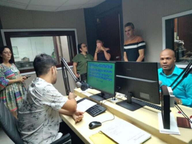 Tras concluir el acto de reapertura de la cabina de locución realizaron un recorrido en el cual intercambiaron con los trabajadores y locutores del turno.