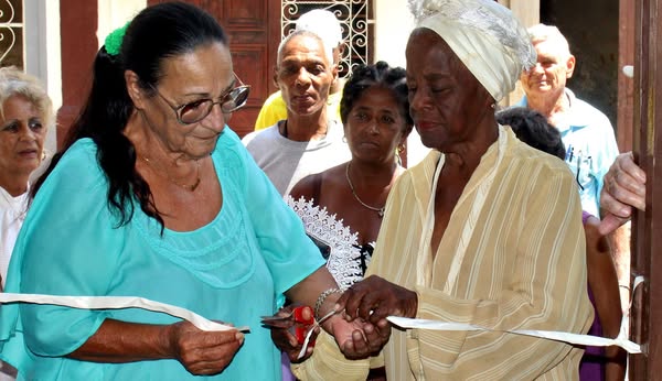 Elena Garay, viuda de Paco Alfonso, figura muy cercana a Lázaro Peña, y nombre central de la cultura cubana, quien dejó profundas huellas en la programación cultural de los Torcedores, junto con Esther Becerra Díaz, exdirectora de ese centro, tuvieron a su cargo el corte de la cinta que dejó inaugurada la sala que atesora objetos personales, documentos y muebles que pertenecieron al querido líder sindical, muchos de los cuales formaron parte de su vida cotidiana y de su incansable labor en este mismo edificio, donde enfrentó con firmeza los intentos de dividir al movimiento sindical y defendió, con verticalidad de principios, los derechos de los trabajadores.