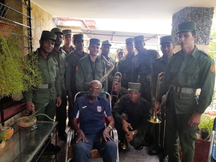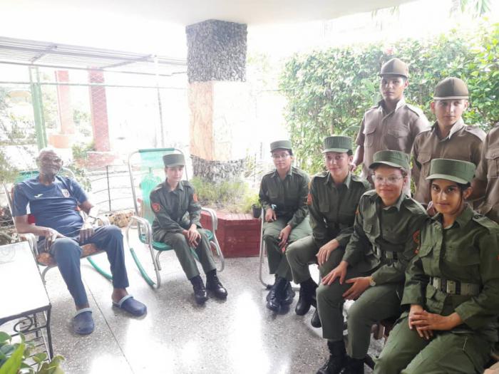 Los jóvenes combatientes visitaron a Cartaya en su domicilio, quien a sus 96 años mantiene una lucidez creadora y una jovialidad casi infantil.