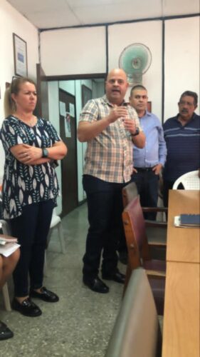 Antes del breve encuentro con el colectivo tuvo la oportunidad de saludar individualmente a los trabajadores al recorrer cada departamento y recibió una actualización de las tareas en las que sigue inmerso el periódico que el 6 de junio festejó sus 55 años de existencia, respaldado por una campaña que compulsó ánimos y quehaceres en función del bien común y su público meta, los trabajadores.