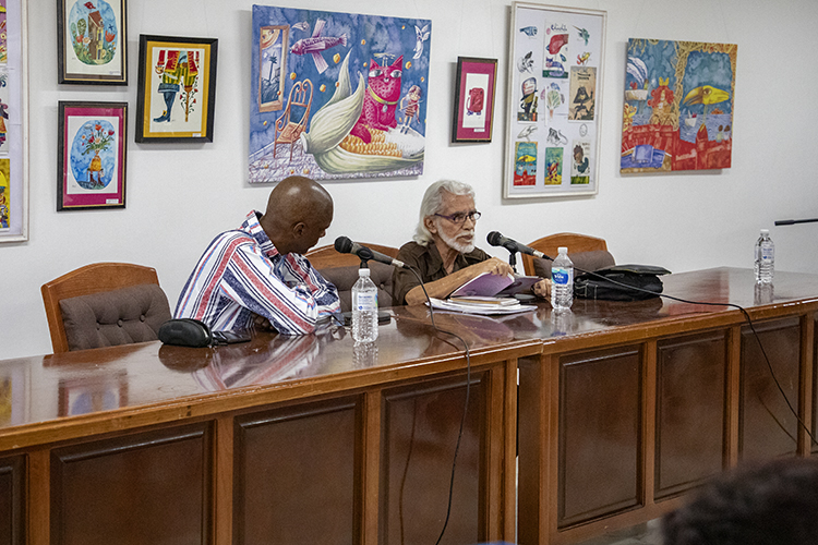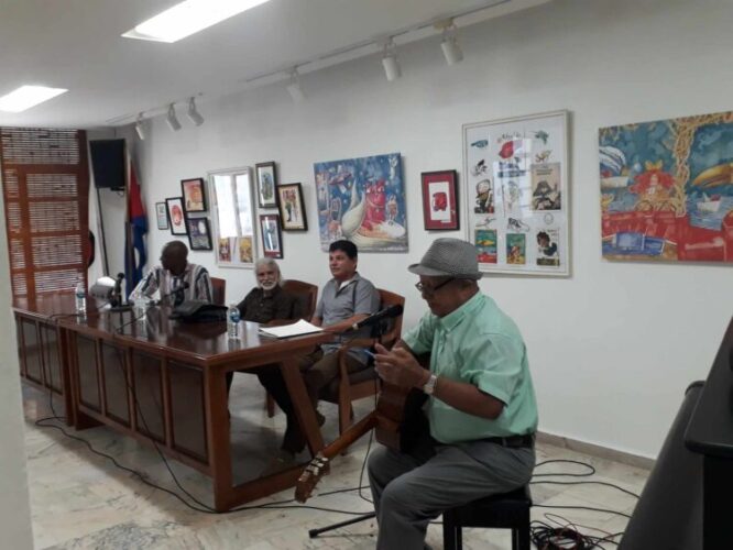 Un público heterogéneo en sexo y edades agradeció el regalo que esta vez deparó la sala Villena, de la Unión Nacional de Escritores y Artistas de Cuba (Uneac), en cuyas paredes retumbaron sonetos y décimas leídos por el agasajado.