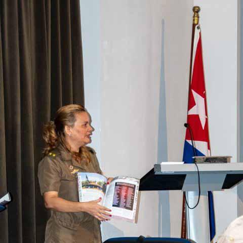 La teniente coronel Dunia Cardoso, jefa del departamento de realización de la revista, explicó el proceso de elaboración de esta edición, desde la selección de los contenidos hasta el diseño gráfico que acompaña cada página.