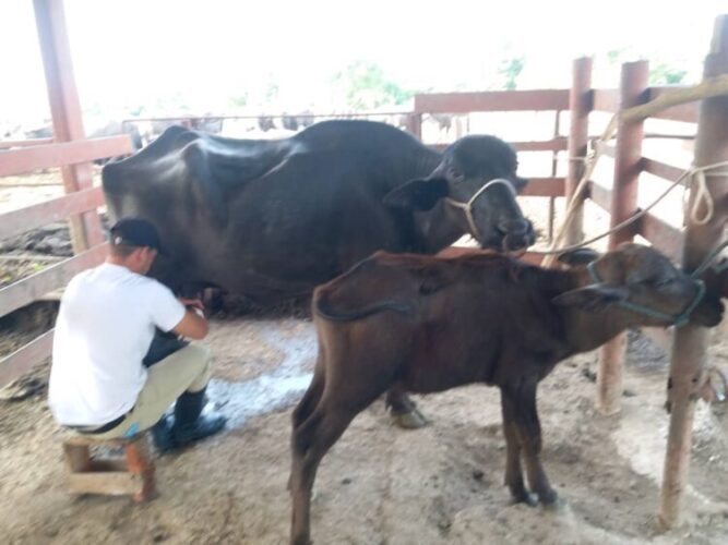 Eso se tradujo en buenos ingresos para los trabajadores en la campaña de acopio de leche bufalina, cuyo pico es de septiembre a diciembre, época en la que, según Liumar, él y el vaquero que tiene laborando en La Giraldilla, llegaron a ganar hasta 35 mil pesos mensuales.