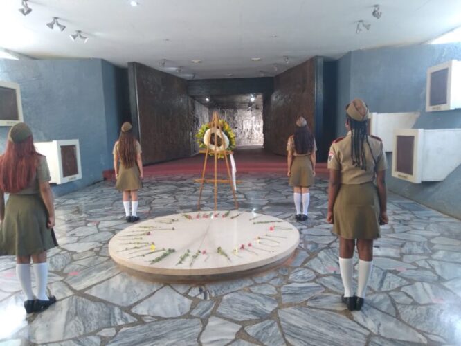 En el Mausoleo a los Mártires de Artemisa, donde descansan los 17 hijos de esta tierra caídos en la acción del 26 de Julio de 1953, y otros moncadistas que sí vivieron el triunfo revolucionario, un grupo de alumnos de la Escuela Militar Camilo Cienfuegos (EMCC) protagonizan una jornada de tributo, a través de la Guardia de Honor.