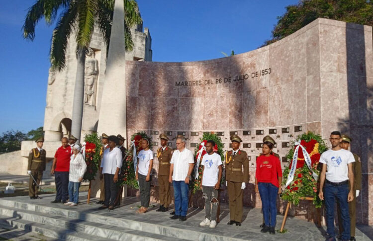 En el cementerio patrimonial Santa Ifigenia, de la Ciudad Héroe, ante el Mausoleo de los Mártires del 26 de Julio, también fueron depositados arreglos florales a nombre de Esteban Lazo, presidente de la Asamblea Nacional del Poder Popular, y del pueblo de Cuba.