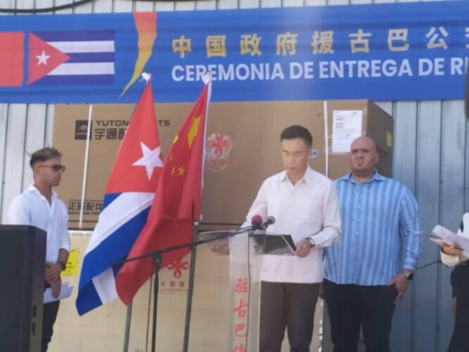 En el acto de entrega oficial del donativo, cortesía de la Empresa Yutong, el Excelentísimo Sr. Huan Xin, Embajador de China en Cuba, se refirió al proyecto de repuestos para la reparación de autobuses y asistencia de su gobierno, que entre los equipos suministrados incluye motores, neumáticos, baterías, entre otros, para revitalizar ómnibus fuera de servicio”, expresó, y lo calificó como “un nuevo impulso al sistema de transporte de la capital.