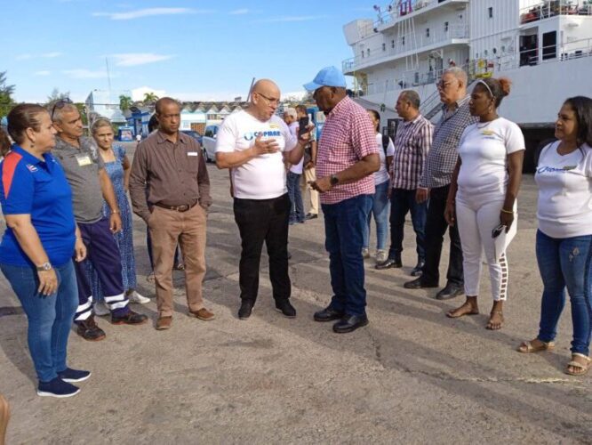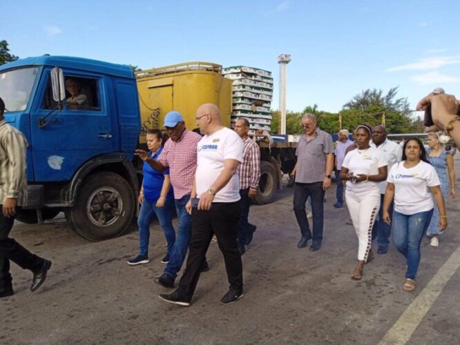 Acompañado por la miembro del Comité Central del Partido Yanet Hernández Pérez,  gobernadora de la capital, Valdés Mesa comprobó la descarga esta semana de mil 400 toneladas de pollo, de las dos mil 800 trasladadas por el primer buque que entra al puerto este año, con destino a la población de provincias centrales y occidentales.