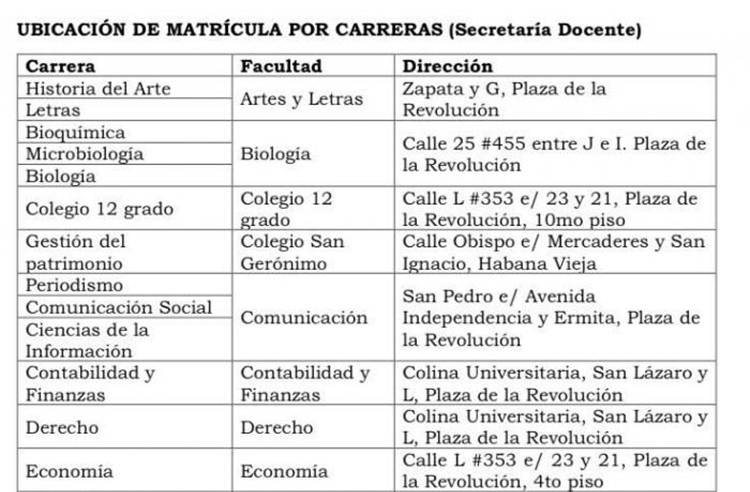 La Secretaría General de la Universidad de La Habana UH informa los detalles del proceso de matrícula para el curso académico 2025-2026