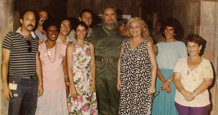 En la propia oficina de la dirección se generó aquel diálogo. A un lado, en el sofá, el Comandante en Jefe, del otro, Canela, el director, y Lázaro Mujica, subdirector editorial. Una imagen fotográfica documenta ese momento. Sin embargo, lo que poco se ha contado de aquella visita es que sin salir todavía del lugar, varios compañeros que trabajaban esa noche, correctores, diseñadores, periodistas y fotógrafos se apostaron fuera de la dirección para saludarlo.