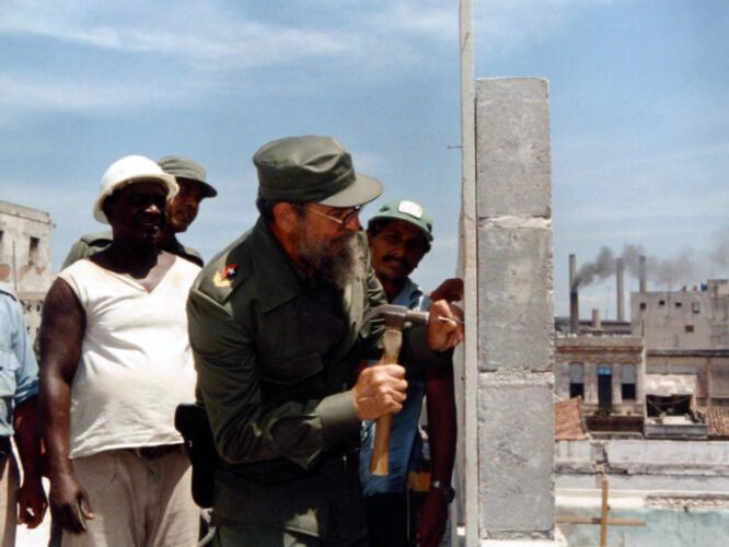 La foto del Comandante en Jefe con un martillo en la mano, junto con los constructores del contingente Blas Roca Calderío, montando un encofrado, es un verdadero regalo para la posteridad y una muestra fehaciente de su admiración por los constructores y también de la humildad y la sencillez que lo caracterizó.