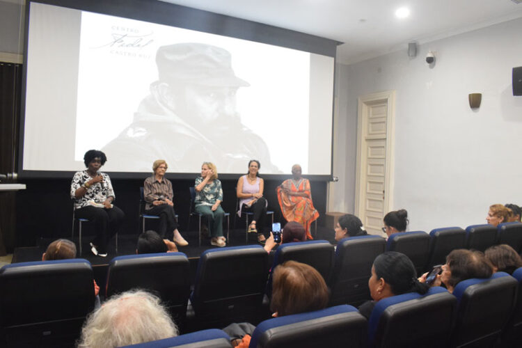 Prestigiosas cubanas contaron anécdotas vinculadas con Fidel. La primera panelista, fue la combatiente de la lucha clandestina y el Ejército Rebelde, Georgina Leyva Pagán, quien fuera esposa del desaparecido Comandante del Ejército Rebelde Julio Camacho Aguilera. “En fecha como esta, en 1958, conocí a Fidel en la Sierra Maestra, pero parecía que nos conocíamos hacía muchos años.