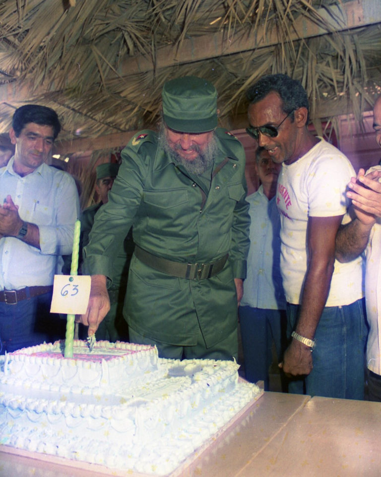 Celebró el 63 cumpleaños junto a trabajadores del Contingente Blas Roca Calderío. En otro momento del día festejó con parte del personal que laboraba en el recinto ferial de Expocuba, inaugurado el 4 de enero de ese mismo año.