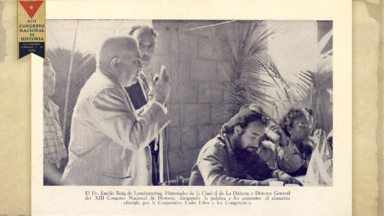Moreira Lino destaca además la presencia en este homenaje de registros documentales de algunas de las excursiones organizadas por Roig para los delegados a los Congresos Nacionales de Historia. Esos recorridos incluyeron sitios históricos y naturales, como el Valle de los Ingenios, el río Guaurabo, así como cuevas y paisajes del maravilloso entorno natural que conminaba a proteger.  Como parte de ese testimonio sobresale la visita al poblado de Jovellanos, en Matanzas, junto a Antonio Núñez Jiménez, entonces presidente del Instituto Nacional de Reforma Agraria.