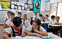 1959: Fueron construidas aproximadamente 10 mil nuevas aulas, la escolarización se elevó a casi el 90 % en las edades de 6 a 12 años, se convirtieron más de 69 instalaciones militares de la dictadura derrocada en escuelas con una capacidad de 40 mil alumnos, se creó un plan especial de estudio para campesinos y más adelante un plan de becas para todos los niveles de enseñanza.