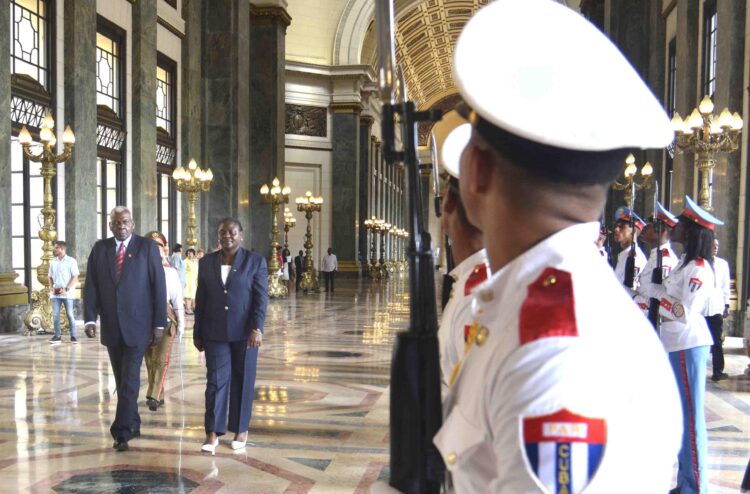 Tras la tradicional ceremonia militar y pase de revista, y la interpretación de los dos himnos nacionales; ambos líderes parlamentarios sostuvieron conversaciones oficiales. Lazo Hernández resaltó las históricas y entrañables relaciones con los pueblos hermanos africanos y su invaluable aporte al crisol de la nacionalidad cubana.