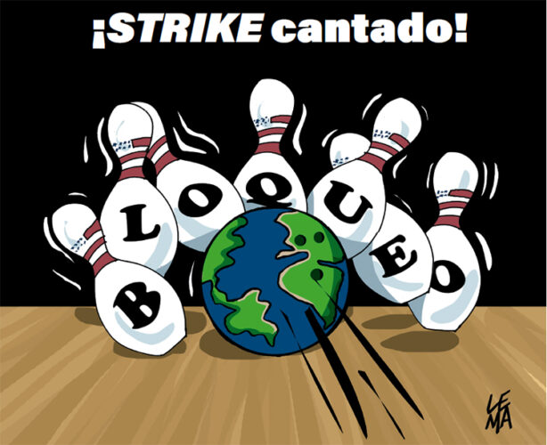 Es cierto. Existe. No es un invento. Sigue en pie. Ahora más recrudecido. Resoluciones aprobadas en la ONU no lo quitan. La solidaridad ayuda a atenuarlo. Su objetivo supremo es hacer morir por hambre y enfermedades a un pueblo entero. Crear un descontento en la población para derrocar a la Revolución es el fin.