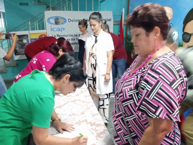 En el policlínico docente Hermanos Cruz de la ciudad de Pinar del Río, bajo un cielo encapotado, trabajadores del sector de la Salud, junto a las máximas autoridades políticas y administrativas del territorio y residentes en el consejo popular más densamente poblado de la provincia dejaron constancia con su rúbrica de que defienden la independencia venezolana.