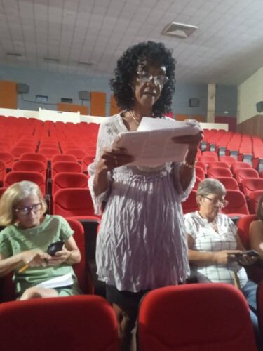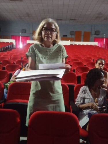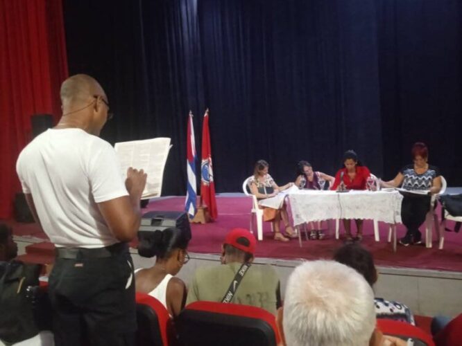 El Cine Caribe fue escenario del intercambio de consulta de los miembros de la Dirección Municipal de Cultura, quienes debatieron con los trabajadores del sector y autoridades locales acerca de la protección económica de los cuidadores de sus padres, en respuesta al proceso de envejecimiento poblacional.
