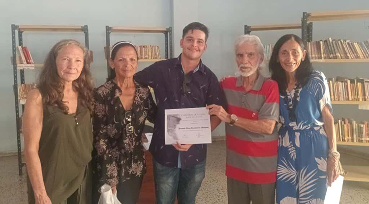 El saludo fraterno de la Oficina de Investigación y Promoción Cultural Indio Naborí, el Centro Iberoamericano de la Décima y el Verso Improvisado (Cidvi) y la Sección de Poesía de la Asociación de Escritores de la Uneac y sus principales directivos llegó mediante la breve intervención del poeta Pedro Péglez González, presidente del Grupo Ala Décima, quien felicitó a la Filial, a su presidenta e integrantes, por tantos esfuerzos cristalizados en 17 ediciones de este certamen, así como al jurado, los galardonados y los finalistas del decimoséptimo capítulo de esta liza literaria. Agradeció, además, la colaboración del colectivo de trabajadores de la Biblioteca Municipal Tomás Tuma Iza, sede de esta significativa acción artístico-literaria.