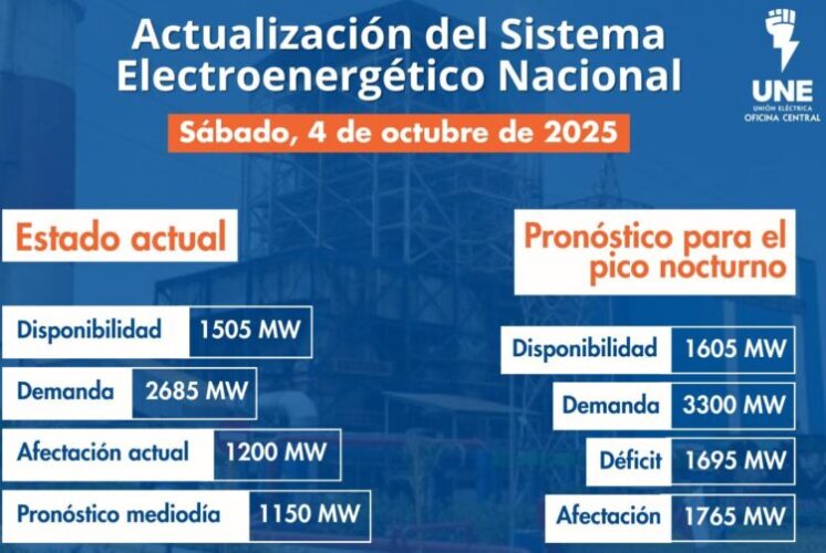 Actualización del Sistema Electroenergético Nacional para el 4 de octubre de 2025.
